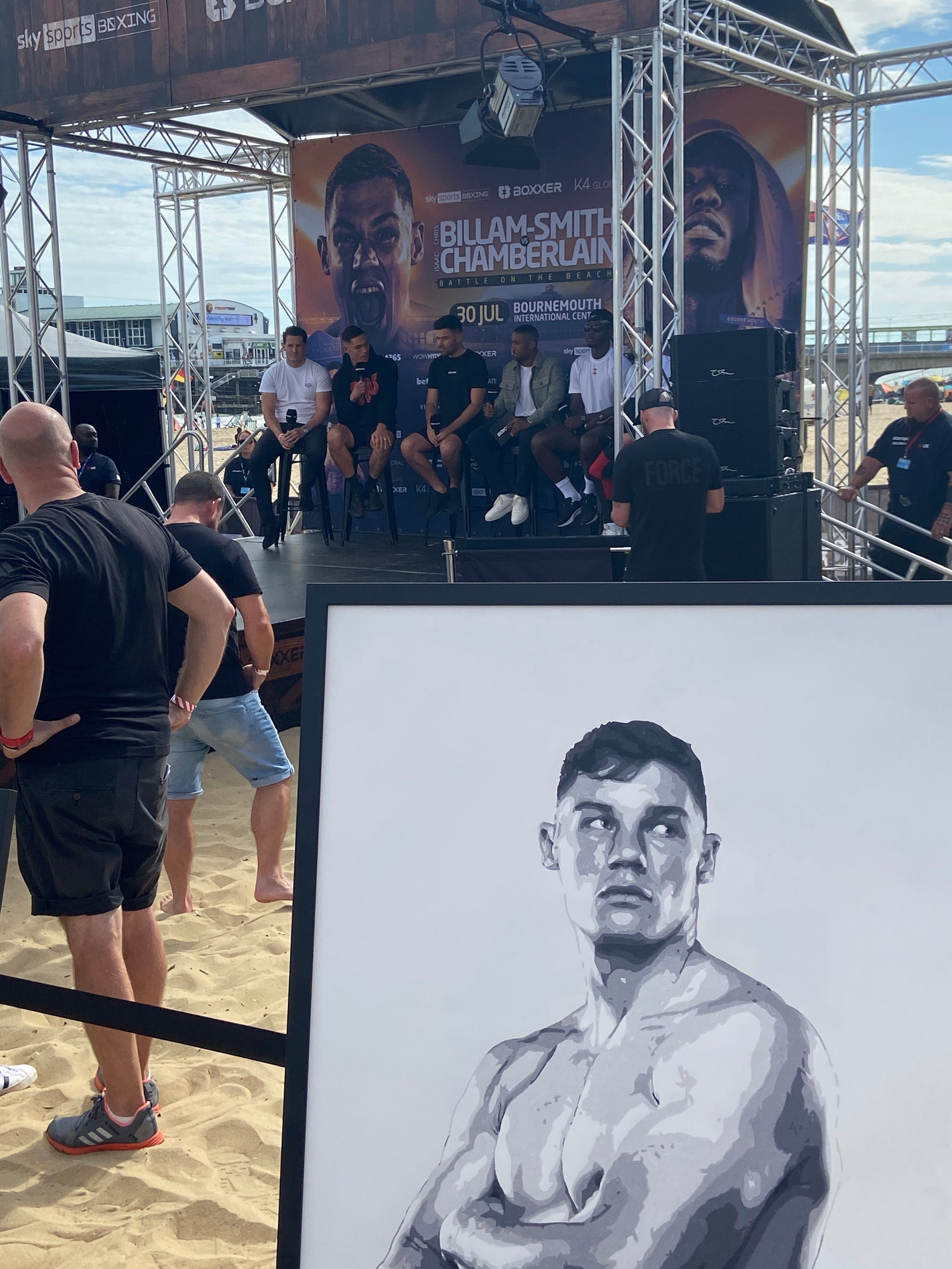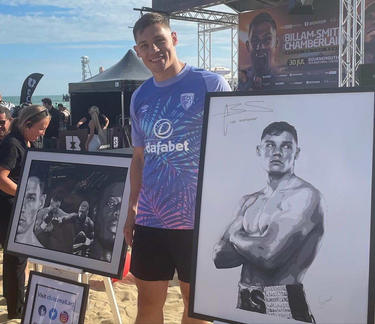 The artwork was signed by the boxer at the media workout ahead of his homecoming fight against Isaac Chamberlain at Bournemouth International Centre (BIC). The artwork was also displayed at the fight venue on the night.