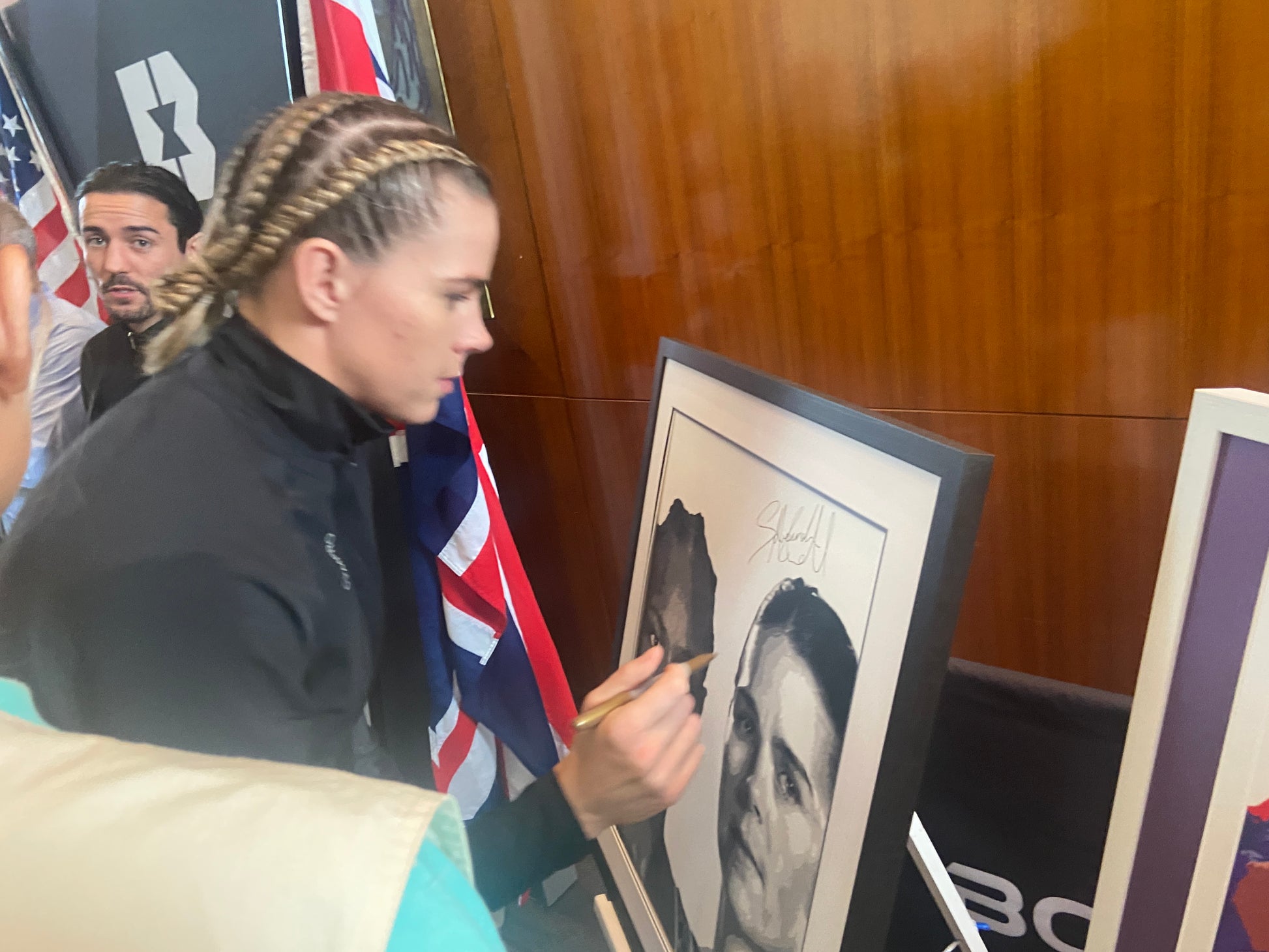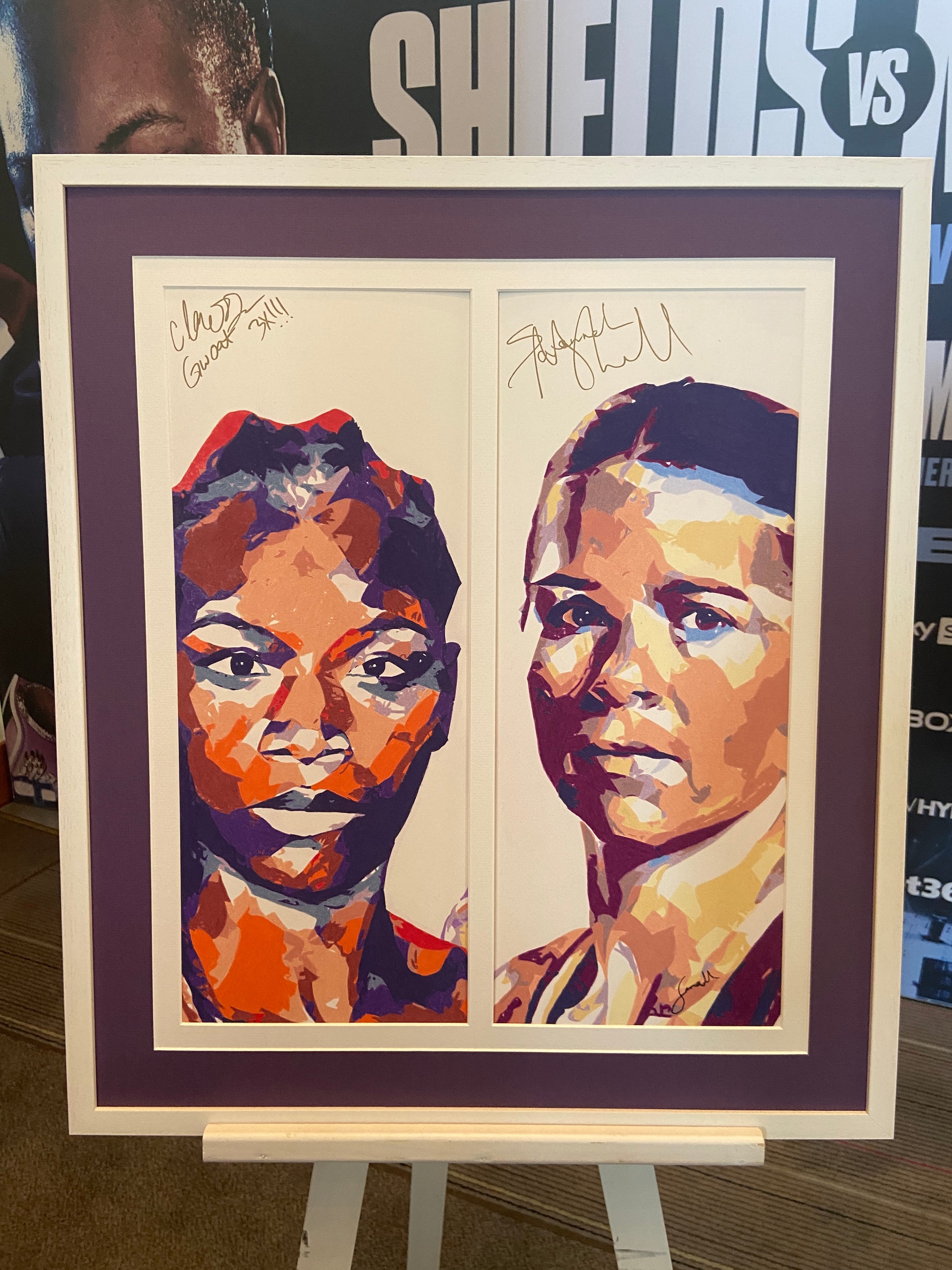 This item was signed by both Claressa and Savannah as part of the pre-fight press conference, alongside a piece commissioned by Boxxer for the fight.